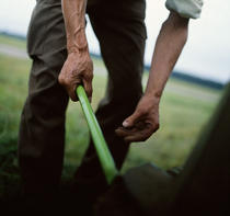 The unexpectedly diminutive figure of a Polish art student at work on the floor of the brutish Chicago Mercantile exchange becomes in Sekula’s hands a quirky Sander-esque occupational portrait. He cleverly upsets conventions of the genre while providing insight into the unlikely situations in which transplanted Poles now find themselves. Like Richard Avedon and Irving Penn whose work this resembles, Sekula displays a great eye for the telling detail (Roland Barthes’s puncta) and a humanist’s sympathy for his subjects’ physical reality. Sekula is thoroughly conversant with photohistory. One sees here echoes of Garry Winogrand’s street-weary denizens, Walker Evans’s sitters and hand tools, and something of the crime-scene spaces of Eugène Atget. Some photos refer directly to well-known masterpieces. For instance, he appropriates Dorothea Lange’s iconic image, Hoe Culture, Aniston, Alabama (1936), a close-up of a fieldworker’s hands, for his own Farmer threshing grass at abandoned airport used by CIA for transport of clandestine “high value” terrorism suspects. Szymany, Poland, July 2009 (2009). Yet Sekula’s image is not about the humility of manual labor, but something much darker. It is a reference to “extraordinary rendition,” the U.S. government’s practice of sending detainees abroad for torture-filled interrogation. Several photographs here documented such “black sites” in Poland. Sekula illustrates how that country has once again played hapless host to some of the world’s worst cruelties.